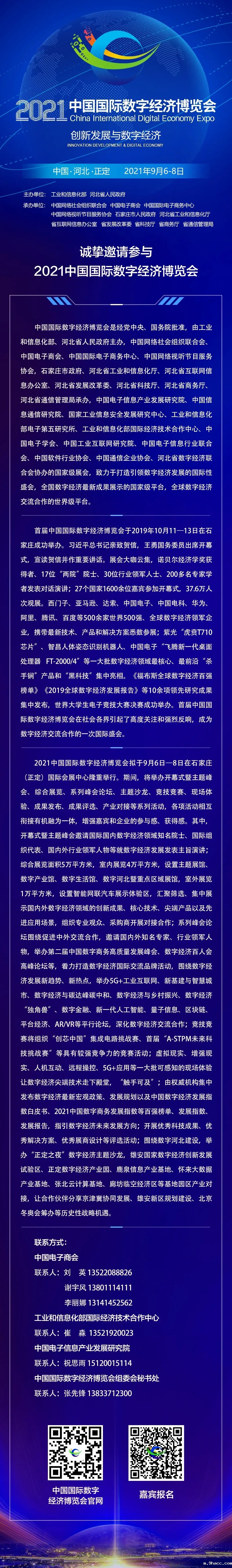 为加快推动数字经济与实体经济融合发展,促进新旧动能转换,壮大经济发展新引擎,省委办公厅、省政府办公厅印发《2021中国国际数字经济博览会总体方案》,明确2021中国国际数字经济博览会(以下简称数博会)将于9月6日—8日在石家庄(正定)国际会展中心举办。