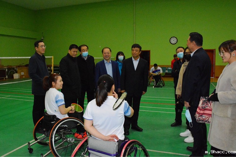 吴显国一行参观了省残疾人文化体育服务中心、羽毛球馆、篮球馆、乒乓球馆等训练场馆,观看了我省残疾人体育工作成果展板,看望了正在训练的运动员们,并与他们亲切交流,合影留念。