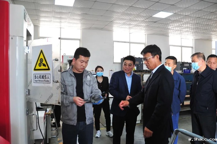 调研组一行先后到成果展厅参观了机器人检测混凝土抗压强度的过程,了解了混凝土智能检测系统的工作流程;在操作车间现场观看了钢筋反复弯曲试验机操作过程。