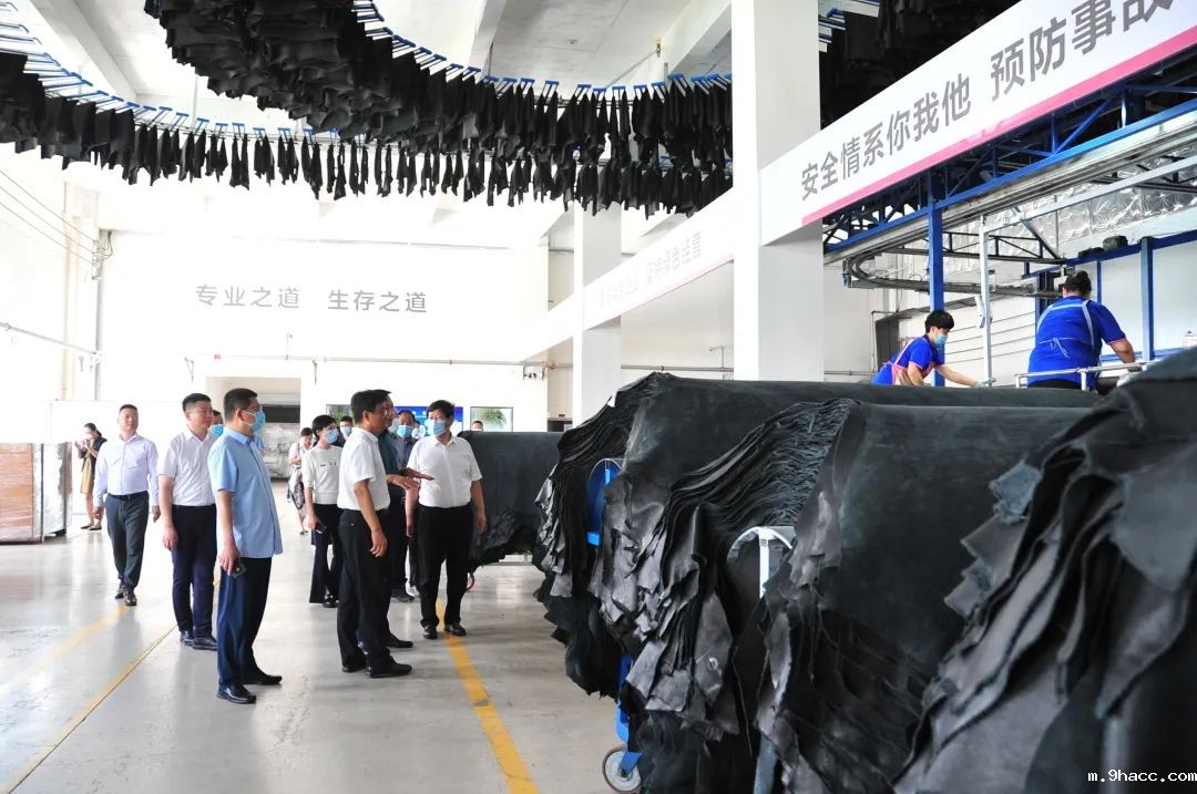 在无极皮革后整循环经济产业园参观考察了园区入驻企业的皮革生产车间,了解了园区的整体规划及项目建设情况。