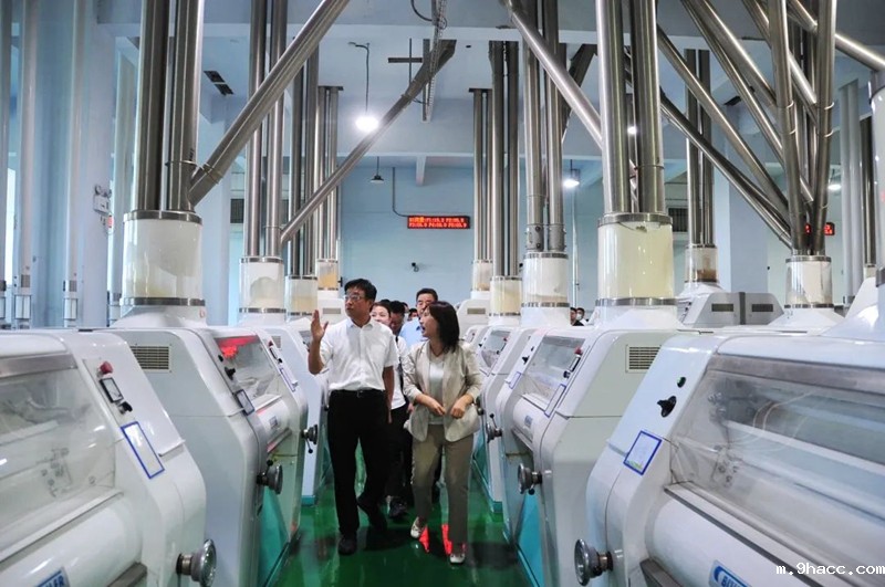 在金沙河参观生产车间、安全质量监控系统,了解粮食生产的仓储物流、生产加工、销售服务等情况。